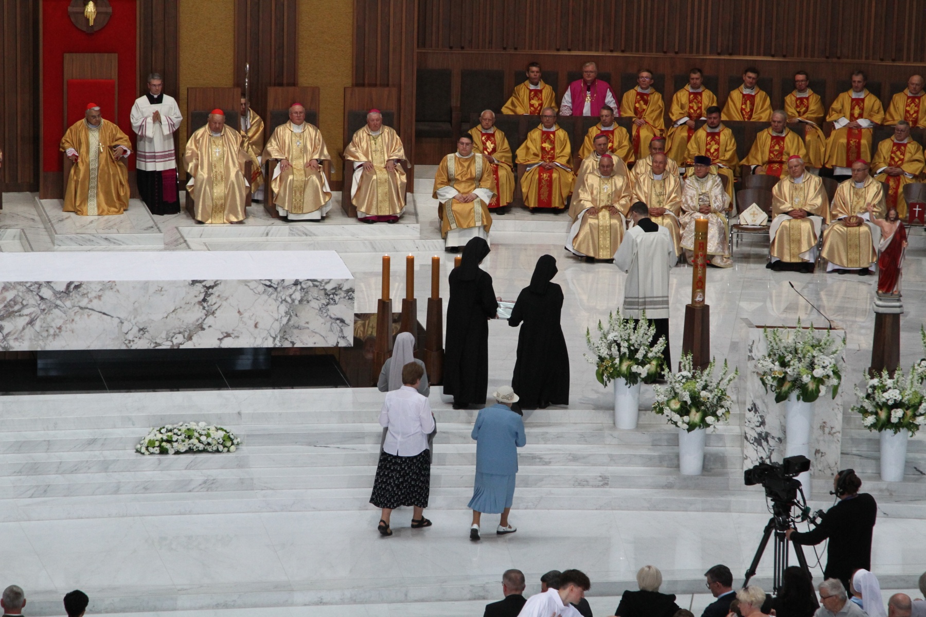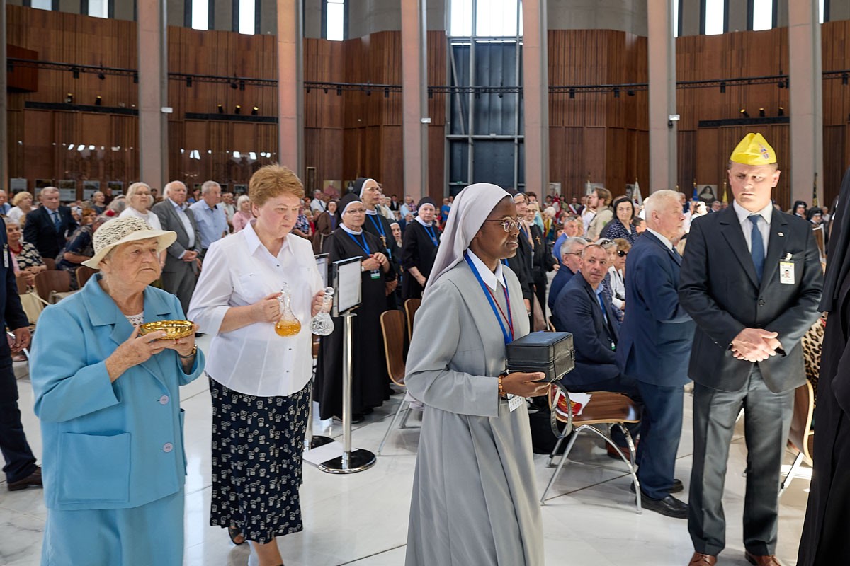 1 czerwca 2025r. odbyło się 18 dziękczynienie w świątyni Opatrzności Bożej -wotum narodu polskiego w Wilanowie- Warszawie. Uroczystościom przewodniczył delegat papieski z Watykanu, nasi biskupi i kardynałowie oraz licznie zgromadzeni kapłani z Ludem Bożym, którzy przyszli w pielgrzymce wiary przez Warszawę z relikwiami bł. M. Teresy Ledóchowskiej i bł. ks. I. Kłopotowskiego. W świątyni znajdują się już relikwie naszego Założyciela bł. O. Honorata Koźmińskiego. O godz. 12 została odprawiona Msza św. w intencji narodu i Darczyńców świątyni. Z Opatrzności Bożej nasza siostra została wezwana do zaszczytnej służby – niesienia darów ołtarza w czasie procesji z darami. To spontaniczne wyróżnienie miało swój charakter w dniu wyboru nowego prezydenta naszej Ojczyzny. Tysiące niebieskich baloników z dziękczynieniem wypuścili Darczyńcy w niebo w dniu Wniebowstąpienia Pana Jezusa.